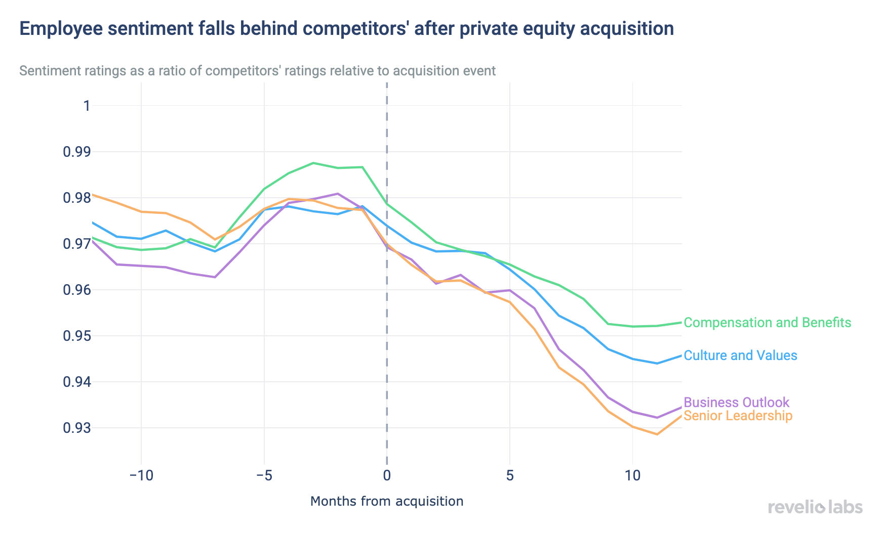 That’s why employee sentiment, culture, happiness, all fall when Private Equity comes in.