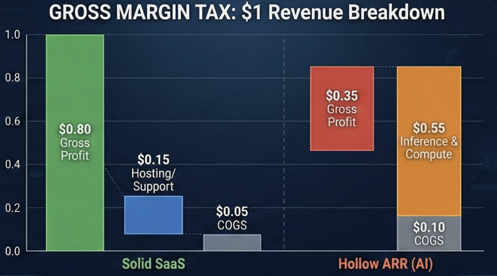 Hollow ARR satisfies the technical definition of a subscription but lacks the structural integrity of a real business. In the solid era of SaaS, revenue was a proxy for a moat. It meant you were embedded. It meant you were a utility. In this new agentic era, revenue is often just a proxy for a temporary efficiency gain. The speed is intoxicating but the math is terrifying.
